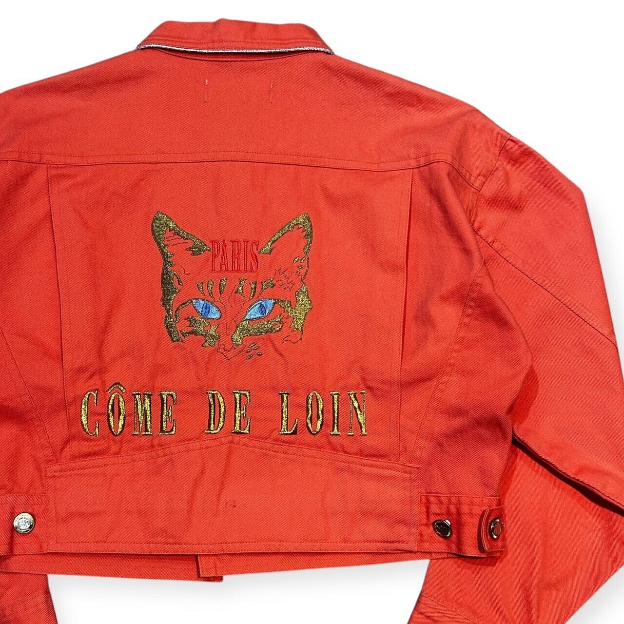 80s〜90s COME DE LOIN PARIS 猫刺繍 カラーデニムジャケット