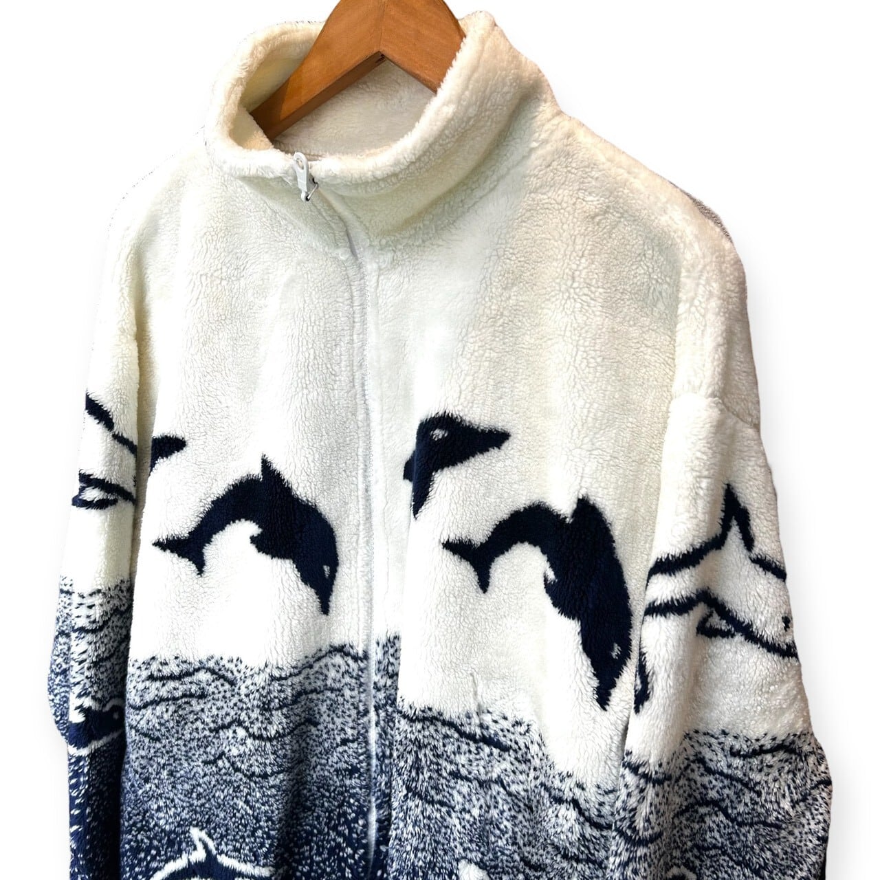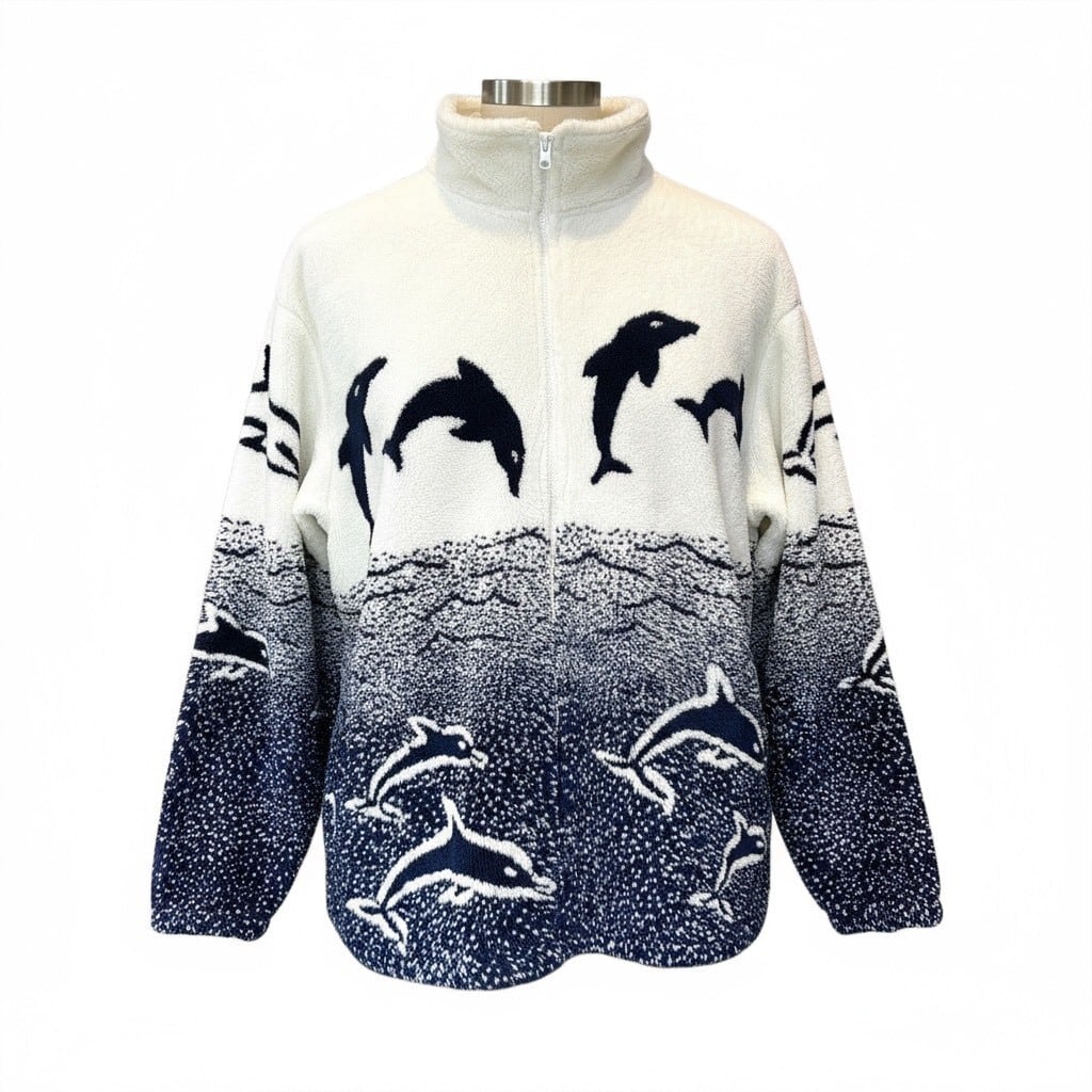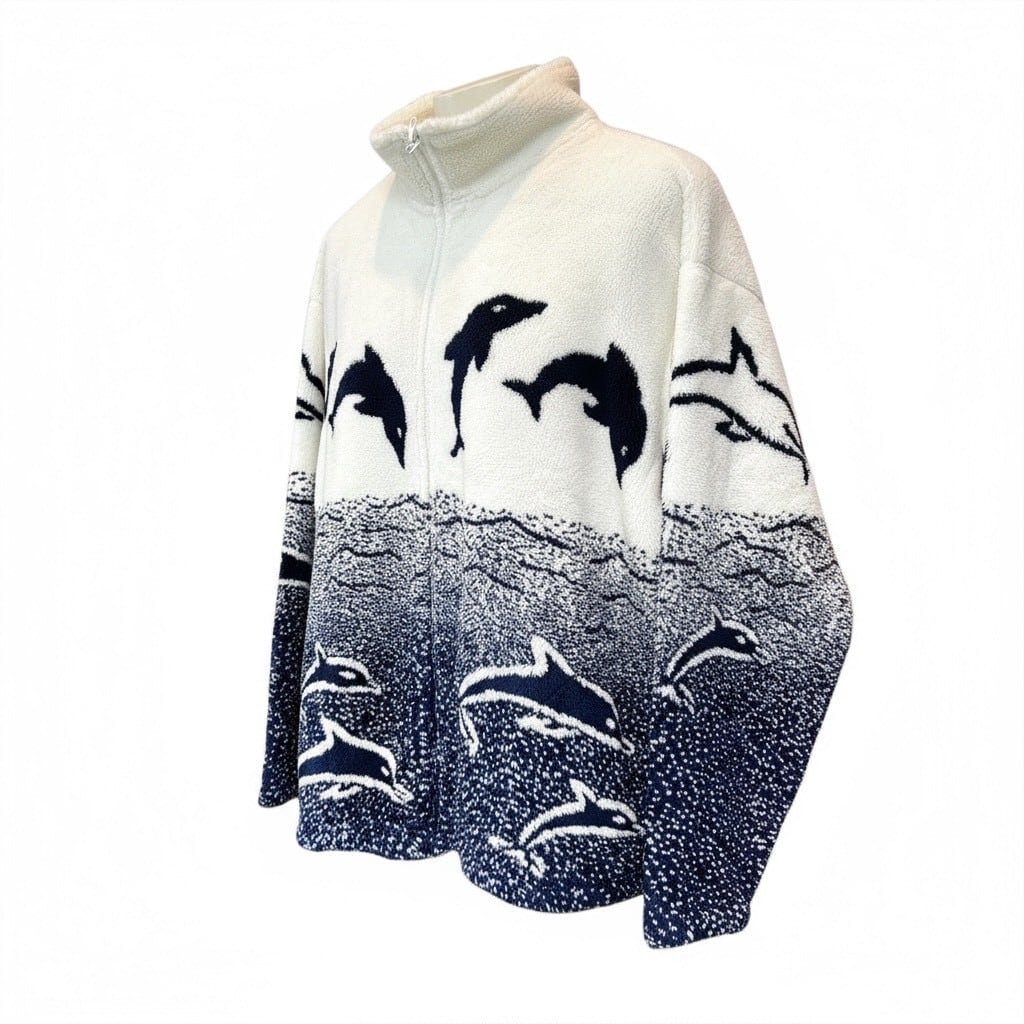 90s USA製 BLACK MOUNTAIN イルカ柄 フリースジャケット